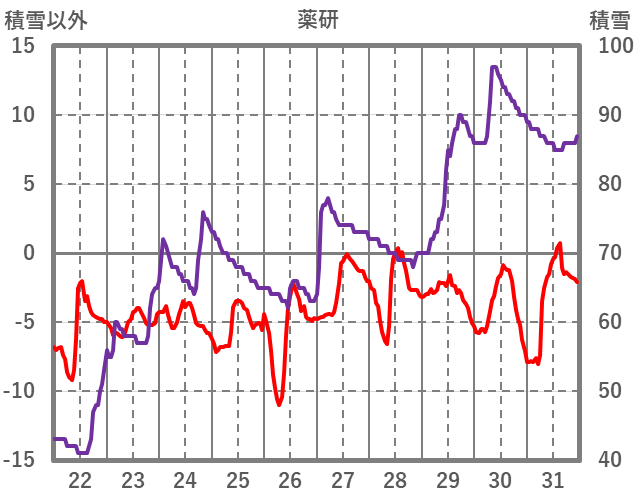 | 日 | 時 | 気温 | 降水 | 風向/風速 | 日照 | 積雪 | 降雪 |