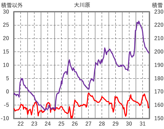 | 日 | 時 | 気温 | 降水 | 風向/風速 | 日照 | 積雪 | 降雪 |