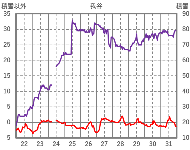 | 日 | 時 | 気温 | 降水 | 風向/風速 | 日照 | 積雪 | 降雪 |
