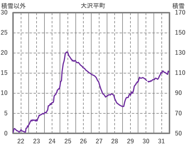 | 日 | 時 | 気温 | 降水 | 風向/風速 | 日照 | 積雪 | 降雪 |