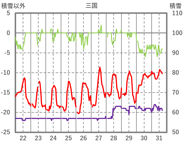 | 日 | 時 | 気温 | 降水 | 風向/風速 | 日照 | 積雪 | 降雪 |