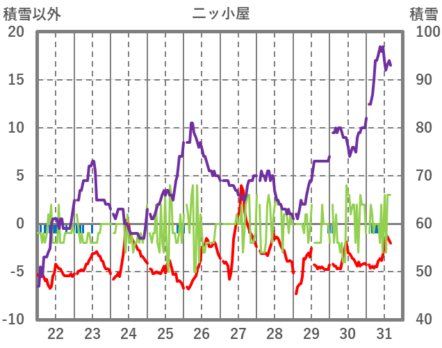 | 日 | 時 | 気温 | 降水 | 風向/風速 | 日照 | 積雪 | 降雪 |