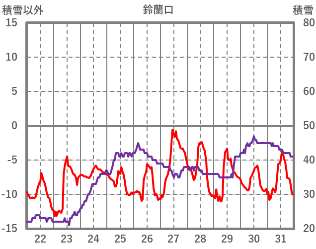 | 日 | 時 | 気温 | 降水 | 風向/風速 | 日照 | 積雪 | 降雪 |