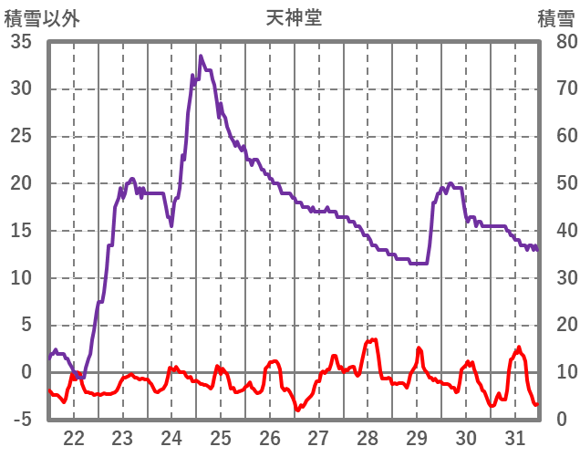 | 日 | 時 | 気温 | 降水 | 風向/風速 | 日照 | 積雪 | 降雪 |
