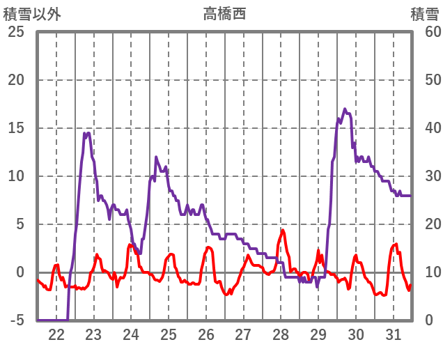 | 日 | 時 | 気温 | 降水 | 風向/風速 | 日照 | 積雪 | 降雪 |