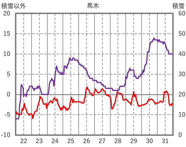 | 日 | 時 | 気温 | 降水 | 風向/風速 | 日照 | 積雪 | 降雪 |