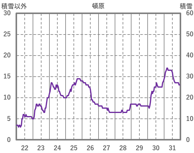 | 日 | 時 | 気温 | 降水 | 風向/風速 | 日照 | 積雪 | 降雪 |