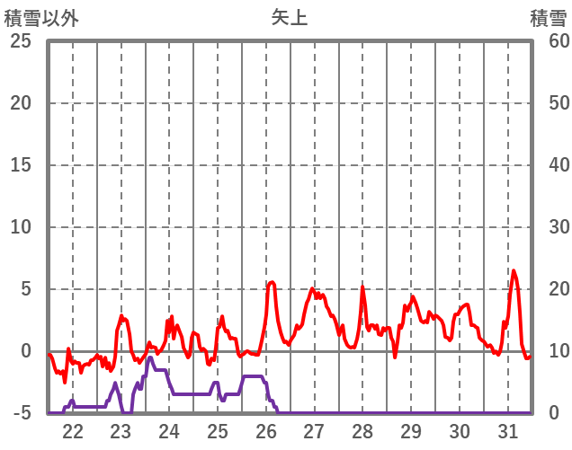 | 日 | 時 | 気温 | 降水 | 風向/風速 | 日照 | 積雪 | 降雪 |