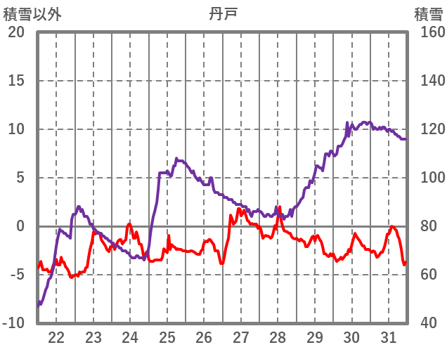 | 日 | 時 | 気温 | 降水 | 風向/風速 | 日照 | 積雪 | 降雪 |