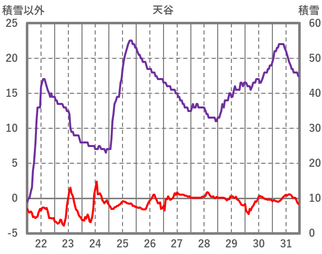 | 日 | 時 | 気温 | 降水 | 風向/風速 | 日照 | 積雪 | 降雪 |
