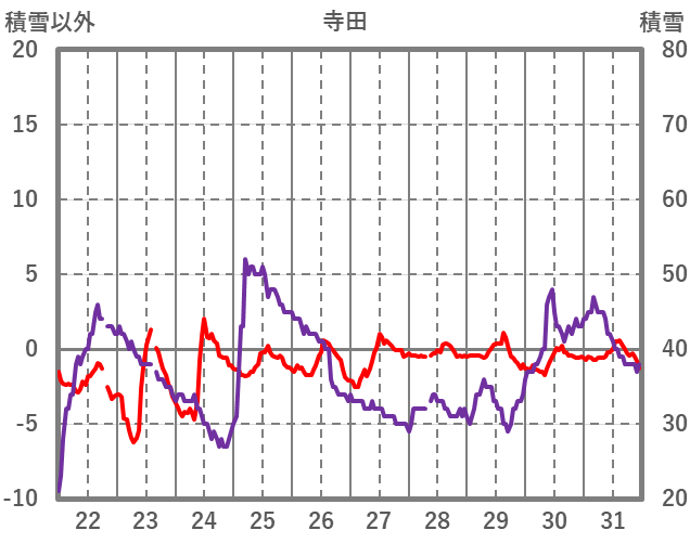 | 日 | 時 | 気温 | 降水 | 風向/風速 | 日照 | 積雪 | 降雪 |