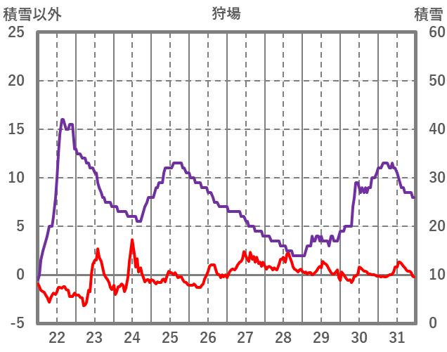 | 日 | 時 | 気温 | 降水 | 風向/風速 | 日照 | 積雪 | 降雪 |
