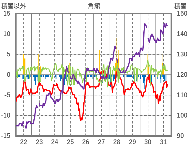 | 日 | 時 | 気温 | 降水 | 風向/風速 | 日照 | 積雪 | 降雪 |