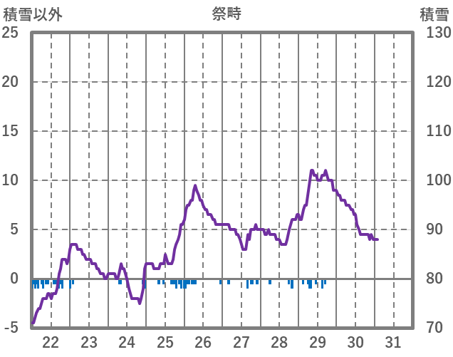 | 日 | 時 | 気温 | 降水 | 風向/風速 | 日照 | 積雪 | 降雪 |