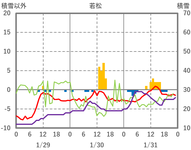 | 日 | 時 | 気温 | 降水 | 風向/風速 | 日照 | 積雪 | 降雪 |