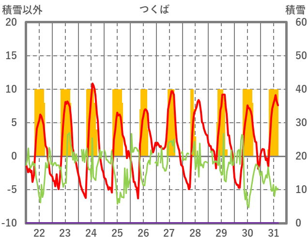 | 日 | 時 | 気温 | 降水 | 風向/風速 | 日照 | 積雪 | 降雪 |
