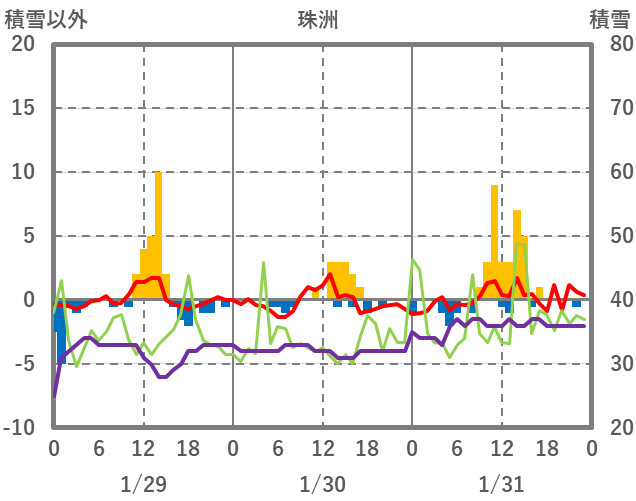 | 日 | 時 | 気温 | 降水 | 風向/風速 | 日照 | 積雪 | 降雪 |