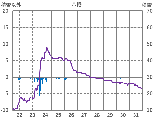| 日 | 時 | 気温 | 降水 | 風向/風速 | 日照 | 積雪 | 降雪 |