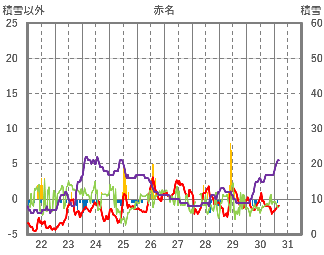 | 日 | 時 | 気温 | 降水 | 風向/風速 | 日照 | 積雪 | 降雪 |