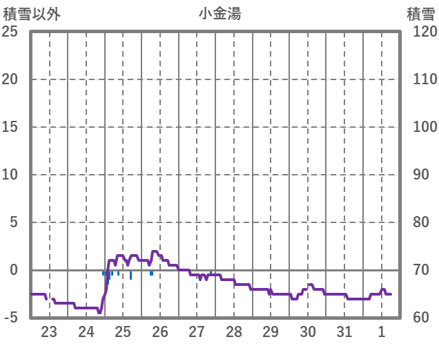 | 日 | 時 | 気温 | 降水 | 風向/風速 | 日照 | 積雪 | 降雪 |