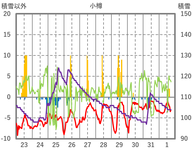 | 日 | 時 | 気温 | 降水 | 風向/風速 | 日照 | 積雪 | 降雪 |