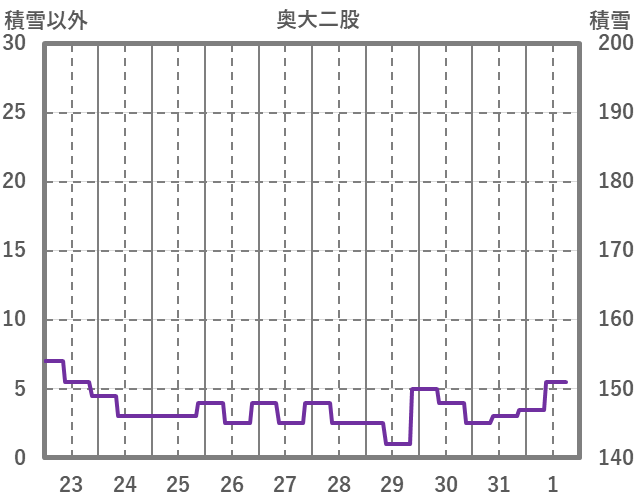 | 日 | 時 | 気温 | 降水 | 風向/風速 | 日照 | 積雪 | 降雪 |