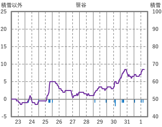 | 日 | 時 | 気温 | 降水 | 風向/風速 | 日照 | 積雪 | 降雪 |