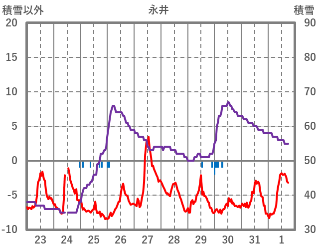 | 日 | 時 | 気温 | 降水 | 風向/風速 | 日照 | 積雪 | 降雪 |