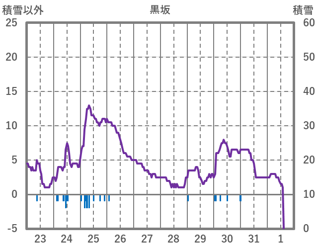 | 日 | 時 | 気温 | 降水 | 風向/風速 | 日照 | 積雪 | 降雪 |