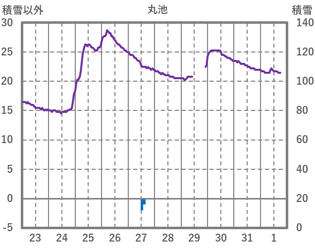 | 日 | 時 | 気温 | 降水 | 風向/風速 | 日照 | 積雪 | 降雪 |