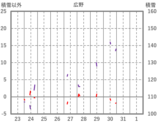 | 日 | 時 | 気温 | 降水 | 風向/風速 | 日照 | 積雪 | 降雪 |