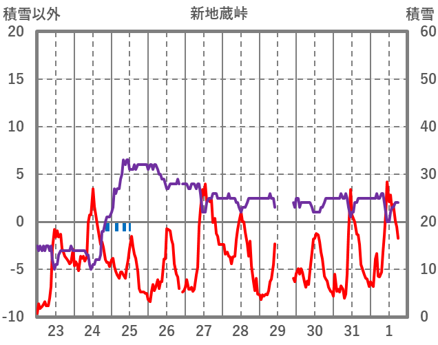 | 日 | 時 | 気温 | 降水 | 風向/風速 | 日照 | 積雪 | 降雪 |