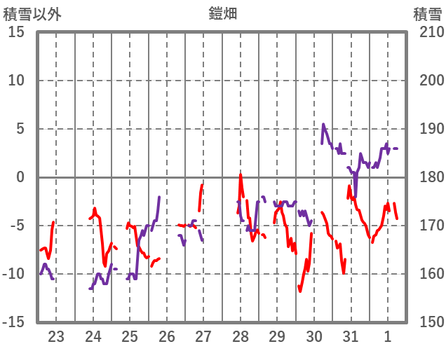 | 日 | 時 | 気温 | 降水 | 風向/風速 | 日照 | 積雪 | 降雪 |
