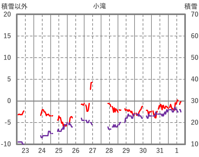 | 日 | 時 | 気温 | 降水 | 風向/風速 | 日照 | 積雪 | 降雪 |
