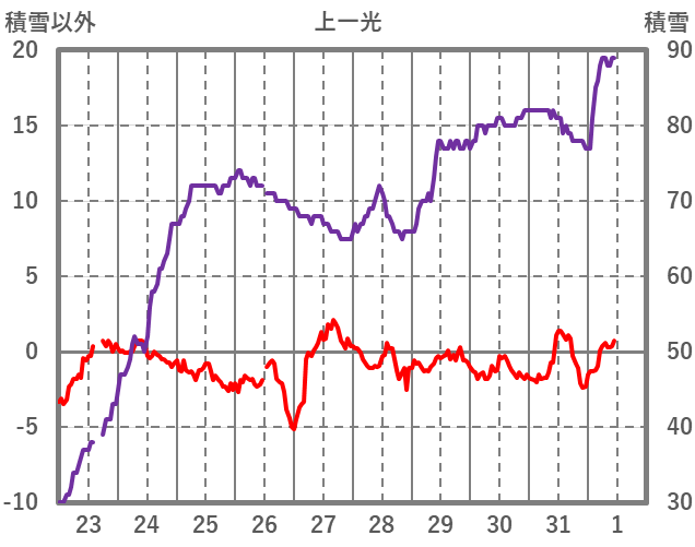 | 日 | 時 | 気温 | 降水 | 風向/風速 | 日照 | 積雪 | 降雪 |
