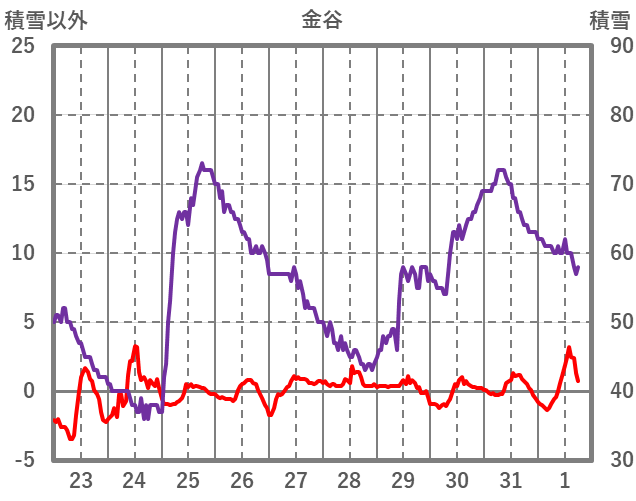 | 日 | 時 | 気温 | 降水 | 風向/風速 | 日照 | 積雪 | 降雪 |