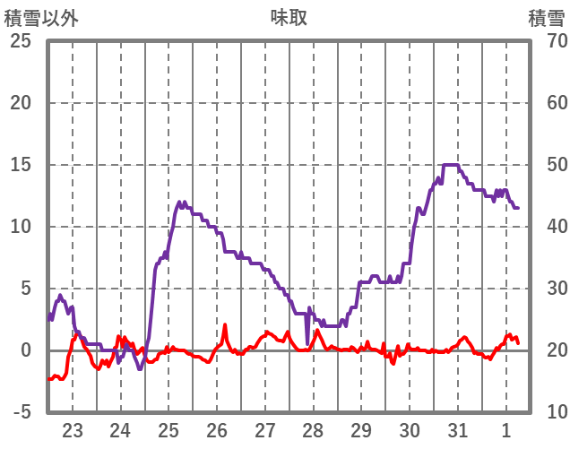 | 日 | 時 | 気温 | 降水 | 風向/風速 | 日照 | 積雪 | 降雪 |