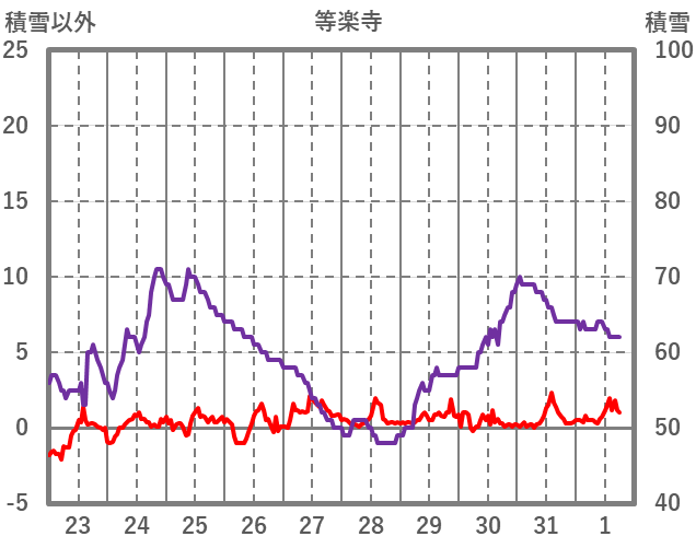 | 日 | 時 | 気温 | 降水 | 風向/風速 | 日照 | 積雪 | 降雪 |