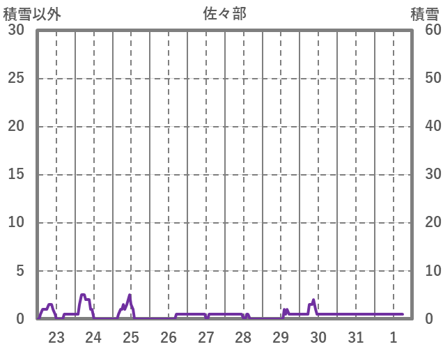 | 日 | 時 | 気温 | 降水 | 風向/風速 | 日照 | 積雪 | 降雪 |