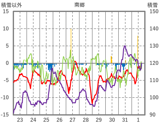 | 日 | 時 | 気温 | 降水 | 風向/風速 | 日照 | 積雪 | 降雪 |