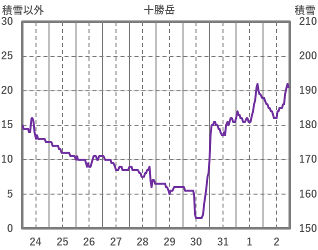 | 日 | 時 | 気温 | 降水 | 風向/風速 | 日照 | 積雪 | 降雪 |