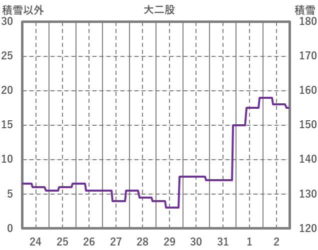 | 日 | 時 | 気温 | 降水 | 風向/風速 | 日照 | 積雪 | 降雪 |