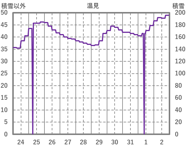 | 日 | 時 | 気温 | 降水 | 風向/風速 | 日照 | 積雪 | 降雪 |