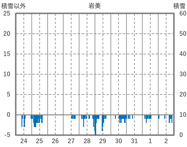 | 日 | 時 | 気温 | 降水 | 風向/風速 | 日照 | 積雪 | 降雪 |