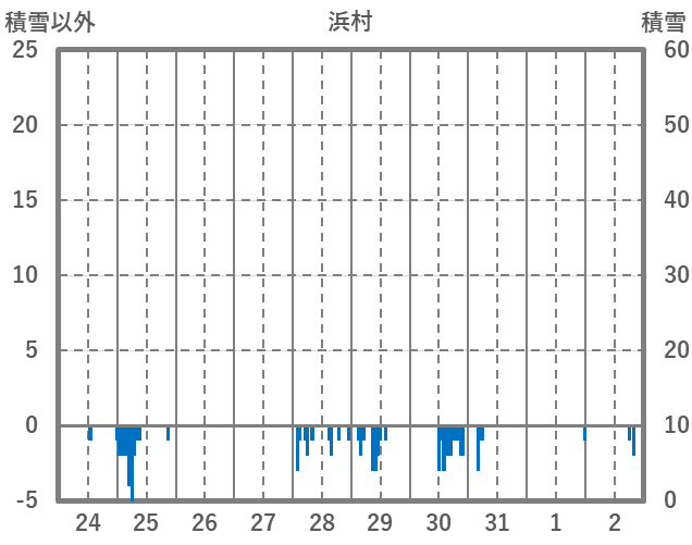 | 日 | 時 | 気温 | 降水 | 風向/風速 | 日照 | 積雪 | 降雪 |