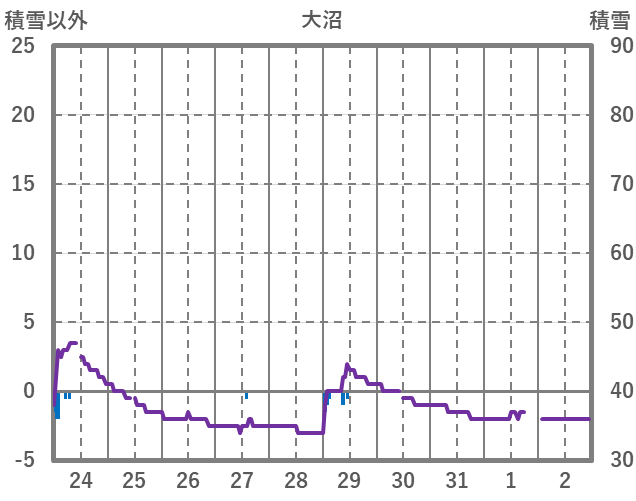 | 日 | 時 | 気温 | 降水 | 風向/風速 | 日照 | 積雪 | 降雪 |
