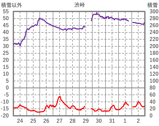 | 日 | 時 | 気温 | 降水 | 風向/風速 | 日照 | 積雪 | 降雪 |