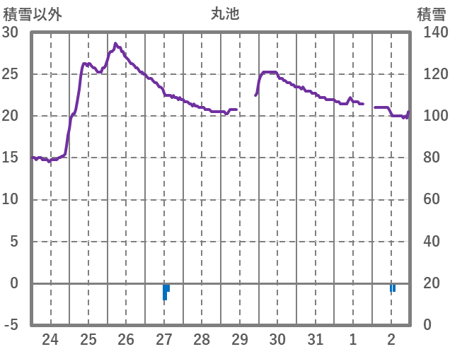 | 日 | 時 | 気温 | 降水 | 風向/風速 | 日照 | 積雪 | 降雪 |