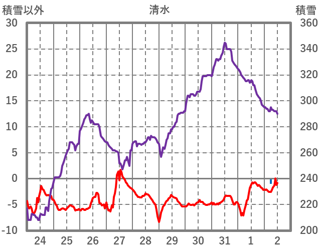 | 日 | 時 | 気温 | 降水 | 風向/風速 | 日照 | 積雪 | 降雪 |