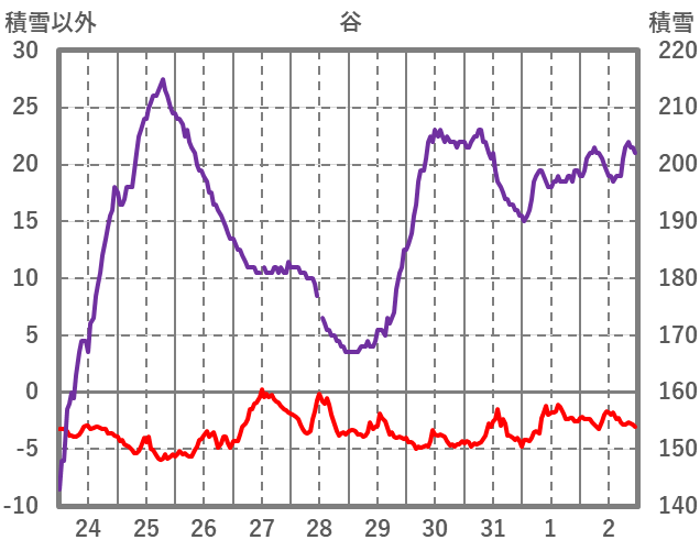 | 日 | 時 | 気温 | 降水 | 風向/風速 | 日照 | 積雪 | 降雪 |